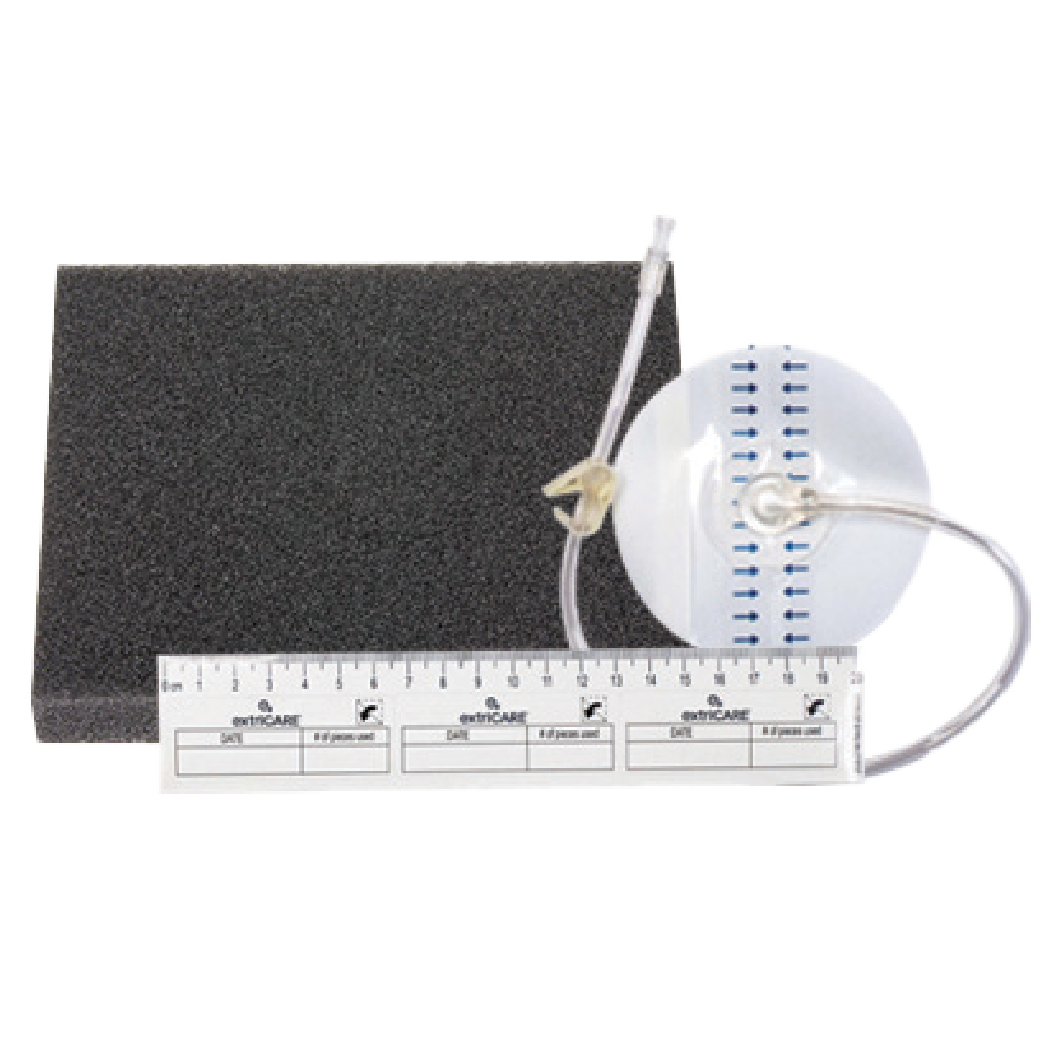 The extriCARE® Dome Set with Extension Tubing is designed to use with the extriCARE® pumps. These are included in each foam dressing kit and are also packaged for individual purchase.